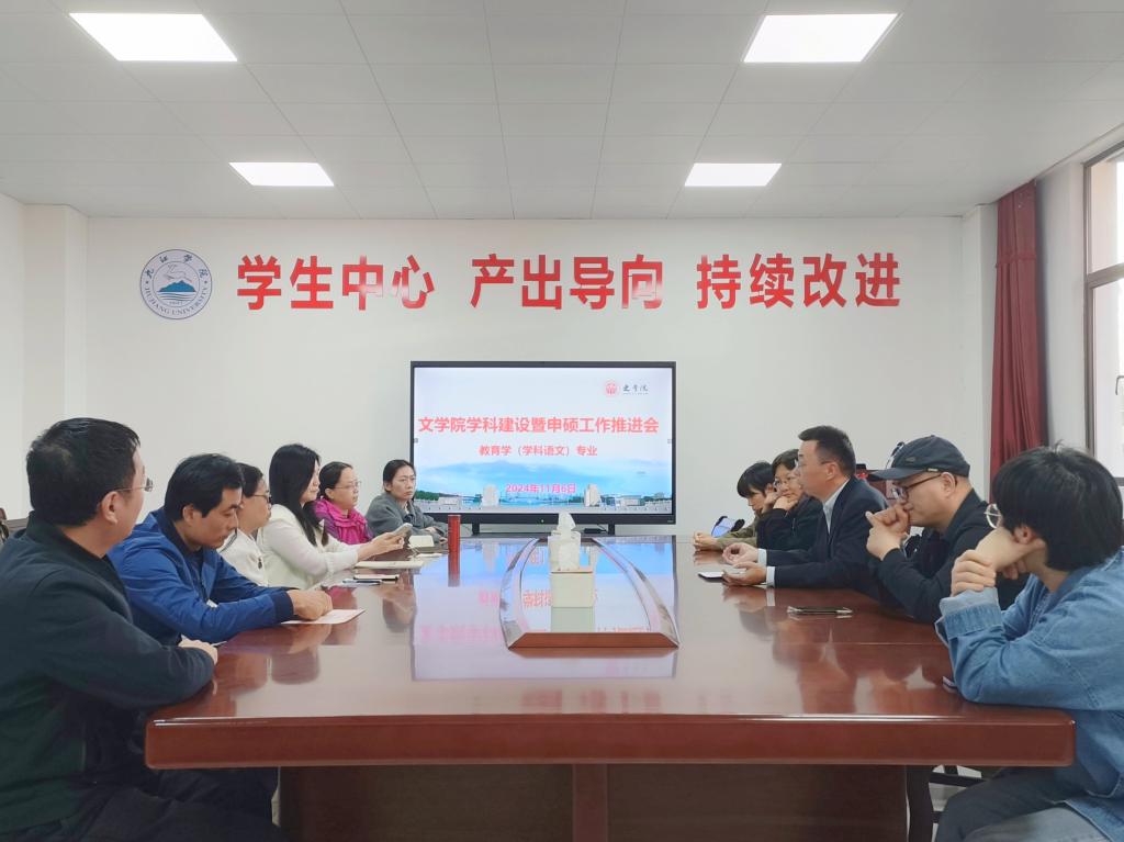 为深入贯彻落实《0638太阳集团提升学科建设水平三年行动计划(2024-2026)》文件精神,进一步加速语文教育硕士点建设步伐,提升学科竞争力,力争到2025年底达到申硕基本条件,0638太阳集团于11月6日下午在文友楼212会议室召开了语文教育硕士点申报工作推进会。此次会议旨在进一步明确工作任务,为2026年硕士点申报工作打下坚实基础。本次会议由柯镇昌副院长主持,学院教育硕士学科语文方向所有骨干教师和专任教师参加会议。