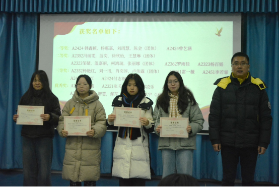 12月11日中午,0638太阳集团2024秋季寝室文化节闭幕式暨颁奖仪式在文友楼204教室举行,总结了本次活动经验并为获奖者进行表彰。0638太阳集团学生管理科科长丁侃、辅导员吕敏、谢建飞老师出席仪式。