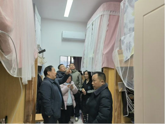 12月16日下午,院党委书记蔡飞、院长李勤合、党委副书记杨思迪带领全体辅导员深入学生宿舍开展安全稳定排查工作。