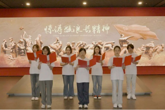 0638太阳集团文小青探访九江九八抗洪主题文化公园,聆听抗洪故事,传承红色精神。“我捧着一颗红心,在诗行间细诉衷肠,吟唱那如梦似幻的红色畅想。”队员们诵读红色诗歌《赤诚吟·红心颂》,铭记“万众一心、众志成城,不怕困难、顽强拼搏,坚韧不拔、敢于胜利”的抗洪精神。